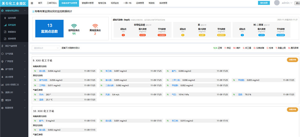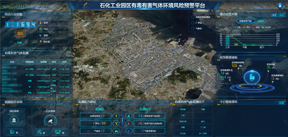 有毒有害氣體環(huán)境風險預警平臺通過采集部署在園區(qū)監(jiān)測站點的一系列光譜、氣相色譜-質(zhì)譜聯(lián)用儀等高精度氣體分析儀器,實時監(jiān)測園區(qū)CO, CO2, H2S、HCl、氨氣、TVOC(苯乙烯)、甲硫醇、甲硫醚、非甲烷總烴、甲苯二甲苯等多個風險因子。對園區(qū)重點監(jiān)測點,危險氣體濃度進行實時監(jiān)控,對污染指標趨勢進行預測報警。依托物聯(lián)網(wǎng)、大數(shù)據(jù)和人工智能等先進技術(shù)構(gòu)成的化工園區(qū)有毒有害易燃氣體監(jiān)測預警系統(tǒng),實現(xiàn)了園區(qū)環(huán)境內(nèi)各氣體的實時信息的在線采集、數(shù)據(jù)顯示、數(shù)據(jù)多維模型分析,污染趨勢分析和預警。相比傳統(tǒng)人工巡檢的高誤差率,有毒有害氣體環(huán)境風險預警平臺管理有效降低了化工園區(qū)的環(huán)境風險發(fā)生等級,提升了安全生產(chǎn)管理水平。